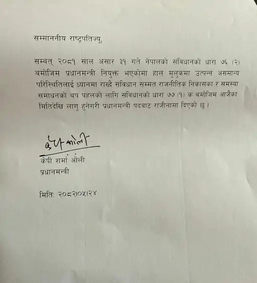 Earlier today, Oli contacted Chief of National Army General Ashok Raj Sigdel seeking assistance from the military to control the rapidly deteriorating situation and to safely depart the Prime Minister’s residence.