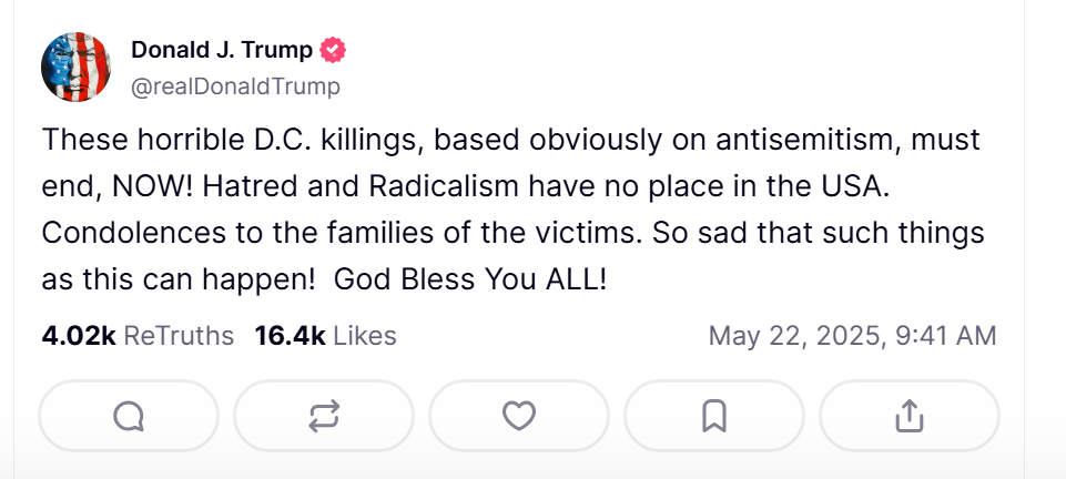 — Embassy of Israel to the USA (@IsraelinUSA) May 22, 2025